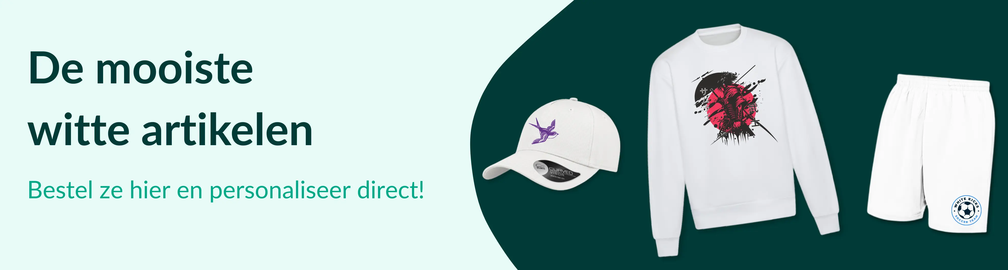 Zorg dat je op tijd je witte outfit in huis voor welke gelegenheid dan ook. Maak hieronder een keuze uit diverse soorten wit textiel. Kies er voor of je het los wil bestellen of je eigen ontwerp er op wil laten bedrukken/borduren met behulp van onze online design tool.