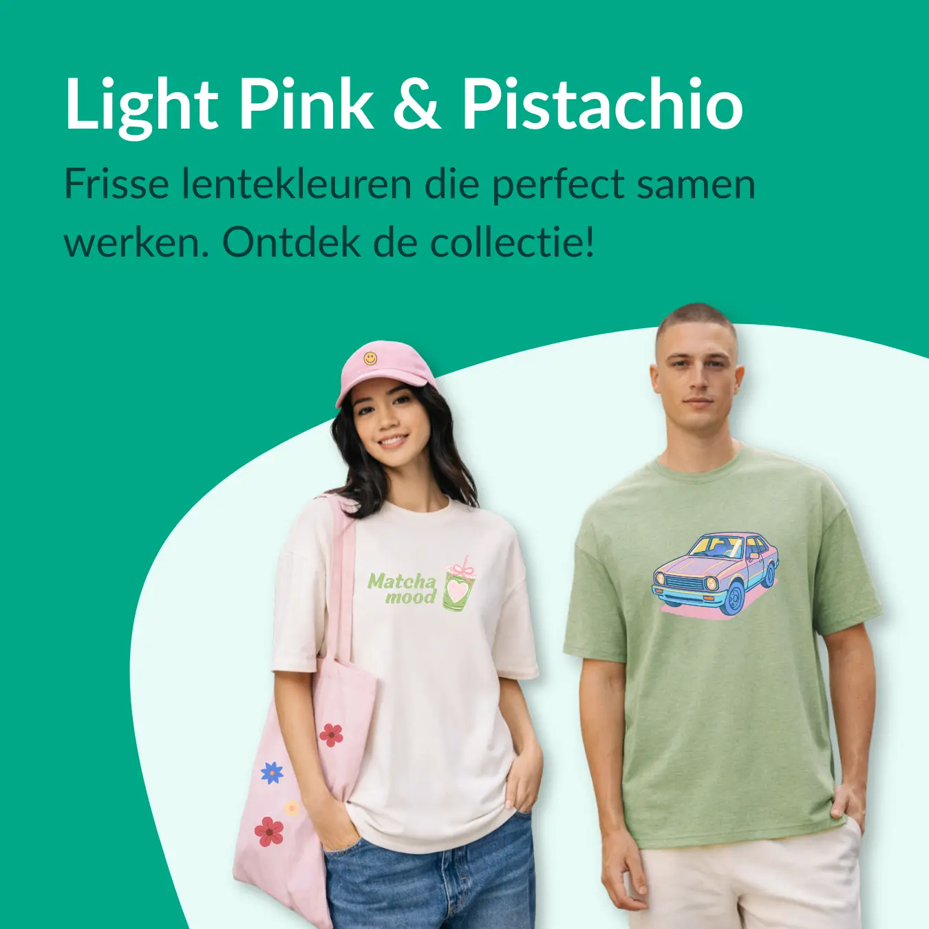 Elk seizoen heeft z’n eigen uitstraling, en de lente staat natuurlijk in het teken van frisse, zachte en levendige kleuren. Laat je inspireren door de kleurentrends van dit voorjaar. Denk aan lichte tinten zoals roze, pistachegroen en andere frisse pastels die perfect passen bij het seizoen. Ideaal voor het bedrukken en/of borduren van T-shirts, sweaters, hoodies, tote bags en andere lentefavorieten. Combineer deze kleuren met rustige neutrale tinten zoals crème, wit of zand voor een frisse en stijlvolle look. Met onze online design tool maak je jouw kledingstuk helemaal eigen. Voeg een tekst, logo of ander ontwerp toe en ontwerp iets dat perfect past bij jouw stijl én bij het voorjaar. Begin vandaag nog en stel jouw perfecte lente-item samen.