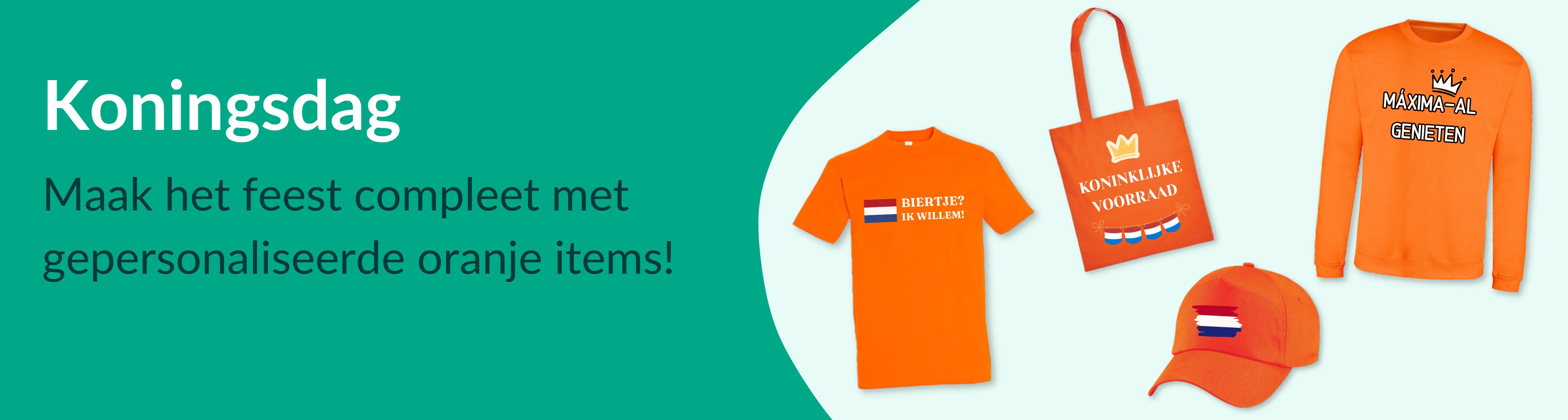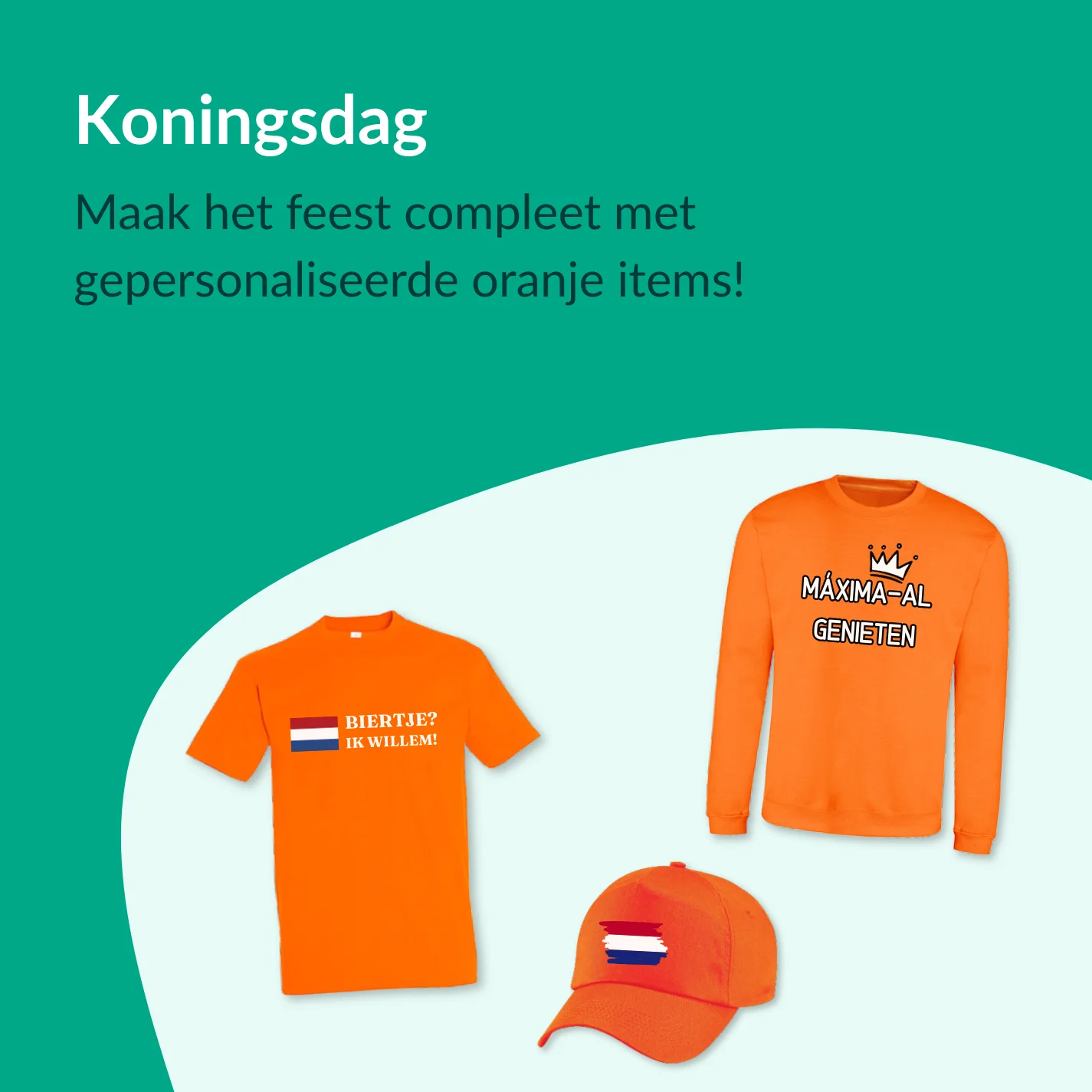 Koningsdag 2026 komt eraan. Op maandag 27 april is het weer tijd om te knallen in oranje! Maak jouw outfit dit jaar extra bijzonder met bedrukte of geborduurde kleding in dé kleur van het feest. Of je nu gaat voor een oranje shirt met een grappige tekst, een oranje hoodie met je vriendengroep erop of een oranje pet met jouw eigen design: alles is mogelijk. Personaliseer gemakkelijk met onze online design tool en steel de show op straat, op de boot of in de kroeg. Op deze pagina vind je volop inspiratie voor jouw unieke Koningsdag-look. Want oranje zijn we allemaal – maar opvallen doe je met iets van jezelf!